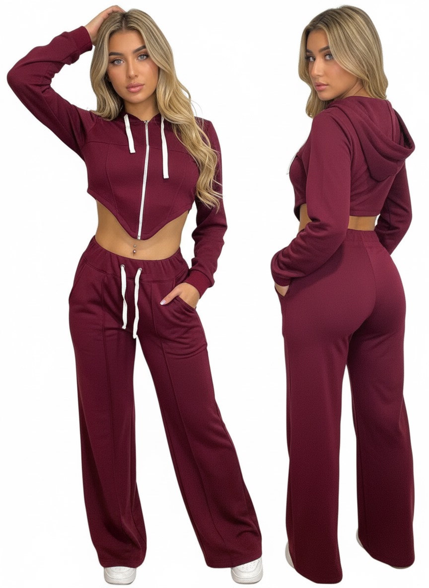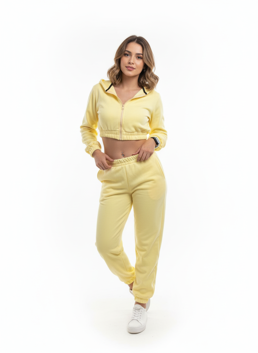 Conquista el estilo y la comodidad con nuestra sudadera de dos piezas: pantalón jogger y chaqueta crop top.